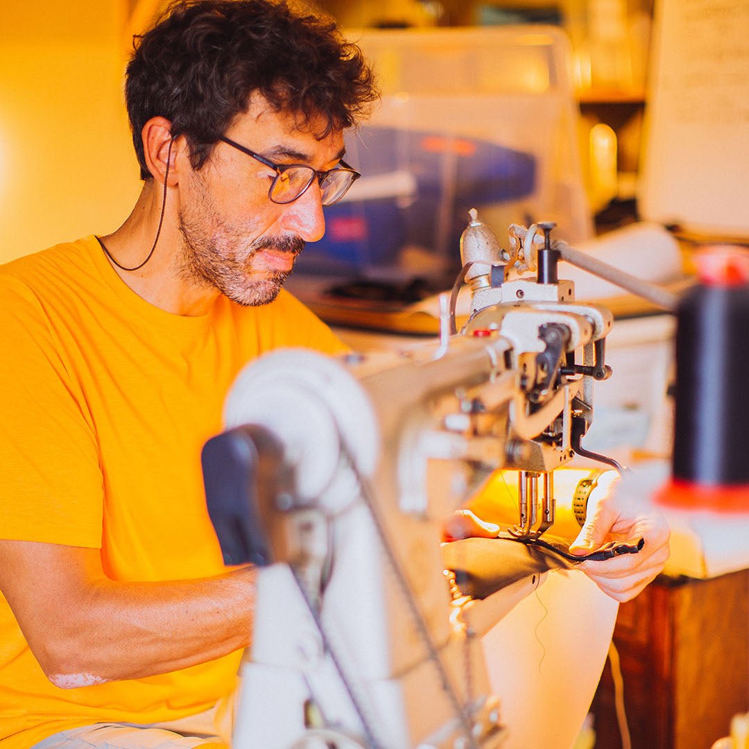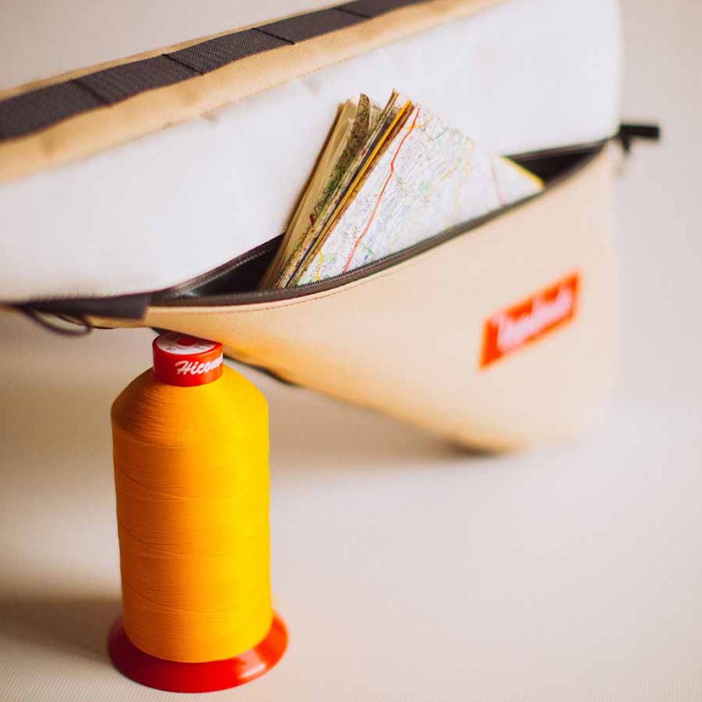 Toutes les sacoches et sacs à dos sont conçus, dessinés et fabriqués à la main dans notre atelier à Mirepoix, en Ariège. Découvrez nos machines à l’atelier pour connaître en détail les diverses techniques.